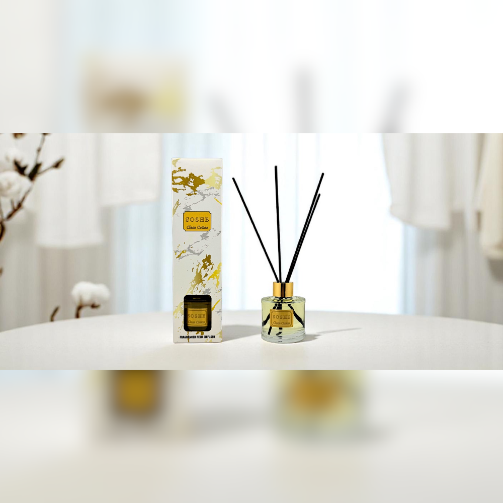 Meet Soshe Bamboo Stick Room Fragrance Clean Cotton for a clean and fresh atmosphere! The perfect harmony of citrus and floral notes adds freshness and vitality to your environment, while warm base notes create a peaceful ambiance.